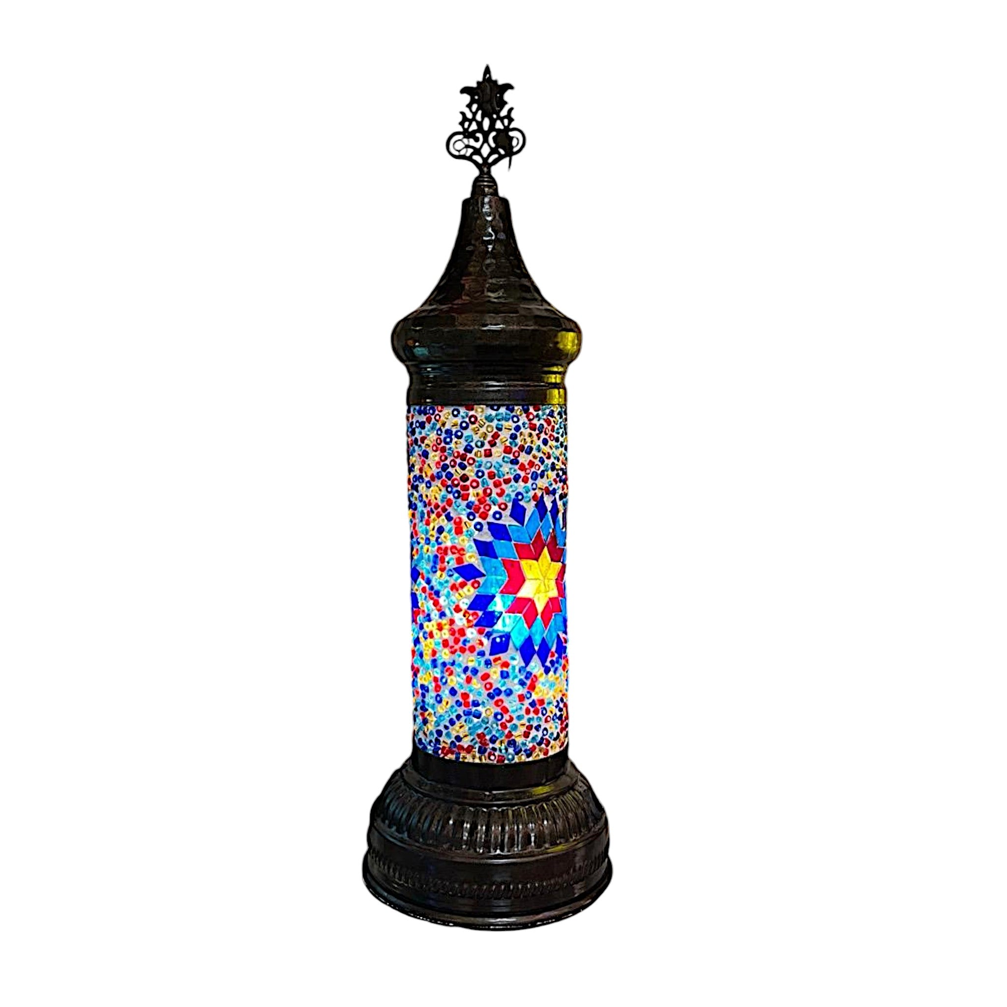 Brighten your space with the timeless beauty of this handcrafted mosaic glass table lamp. Featuring vibrant stained-glass pieces arranged in intricate patterns, each lamp creates a warm, ambient glow perfect for any room. Whether you're decorating a bohemian bedroom, adding color to your living room, or looking for a unique bedside light, this Turkish-style mosaic lamp delivers both artistry and function. Its colorful design and vintage charm make it an ideal accent for eclectic, global, or modern décor styles. Add a touch of handcrafted elegance to your home with this one-of-a-kind decorative lighting piece.