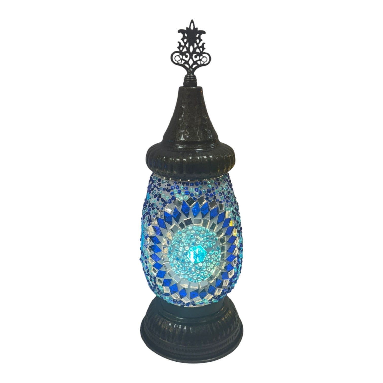 Brighten your space with the timeless beauty of this handcrafted mosaic glass table lamp. Featuring vibrant stained-glass pieces arranged in intricate patterns, each lamp creates a warm, ambient glow perfect for any room. Whether you're decorating a bohemian bedroom, adding color to your living room, or looking for a unique bedside light, this Turkish-style mosaic lamp delivers both artistry and function. Its colorful design and vintage charm make it an ideal accent for eclectic, global, or modern décor styles. Add a touch of handcrafted elegance to your home with this one-of-a-kind decorative lighting piece.